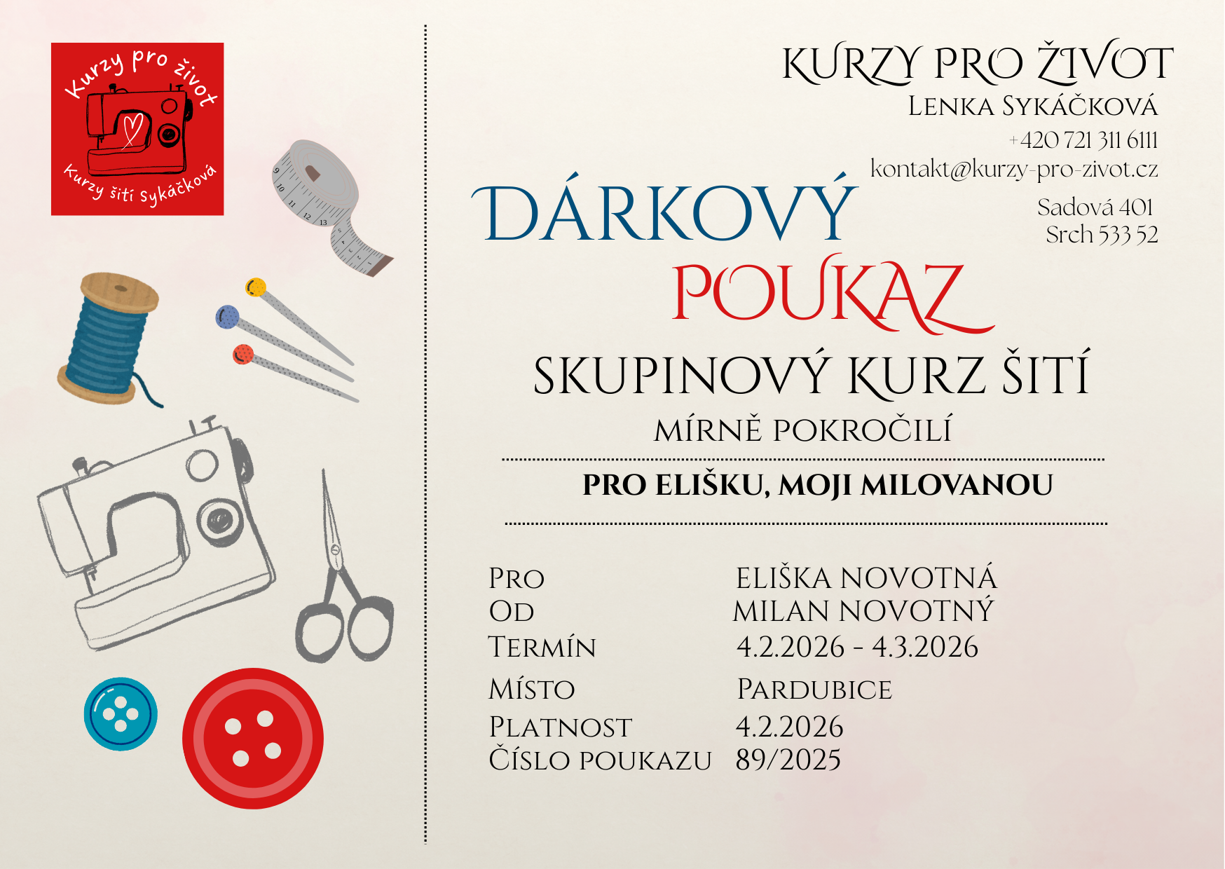 Individuální kurzy šití pro začátečníky probíhají jen u mně doma v Srchu na adrese: Sadová 401, Srch 533 52