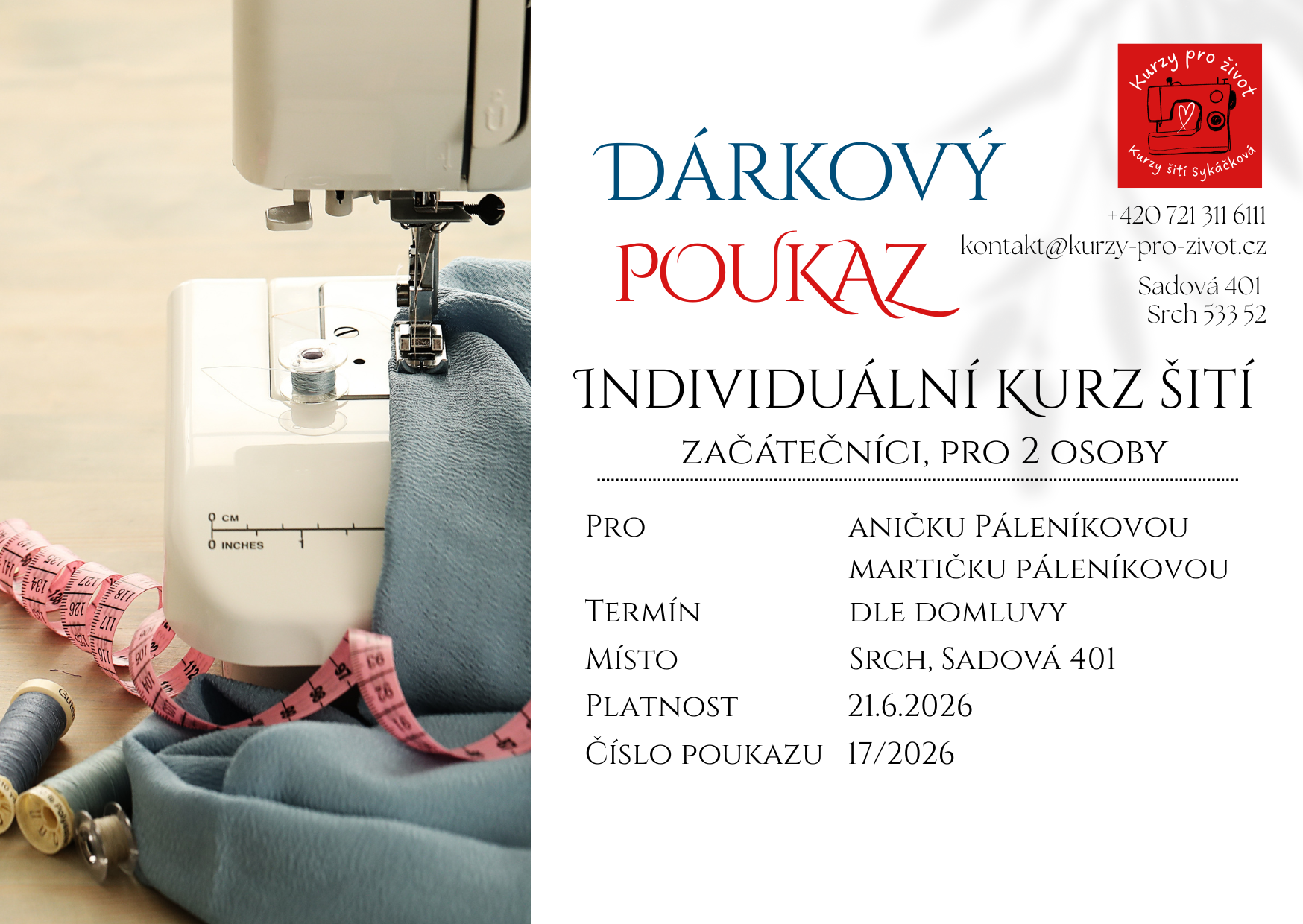 - Šicí stroje k dispozici ZDARMA pro každého účastníka kurzu